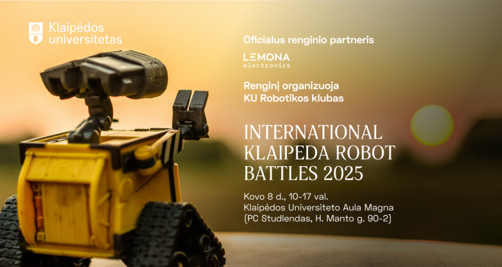 The Robotics Club of Klaipėda University is organizing the "International Klaipeda Robot Battles 2025" robotics competition on March 8 at Klaipėda University and invites robotics enthusiasts to register.