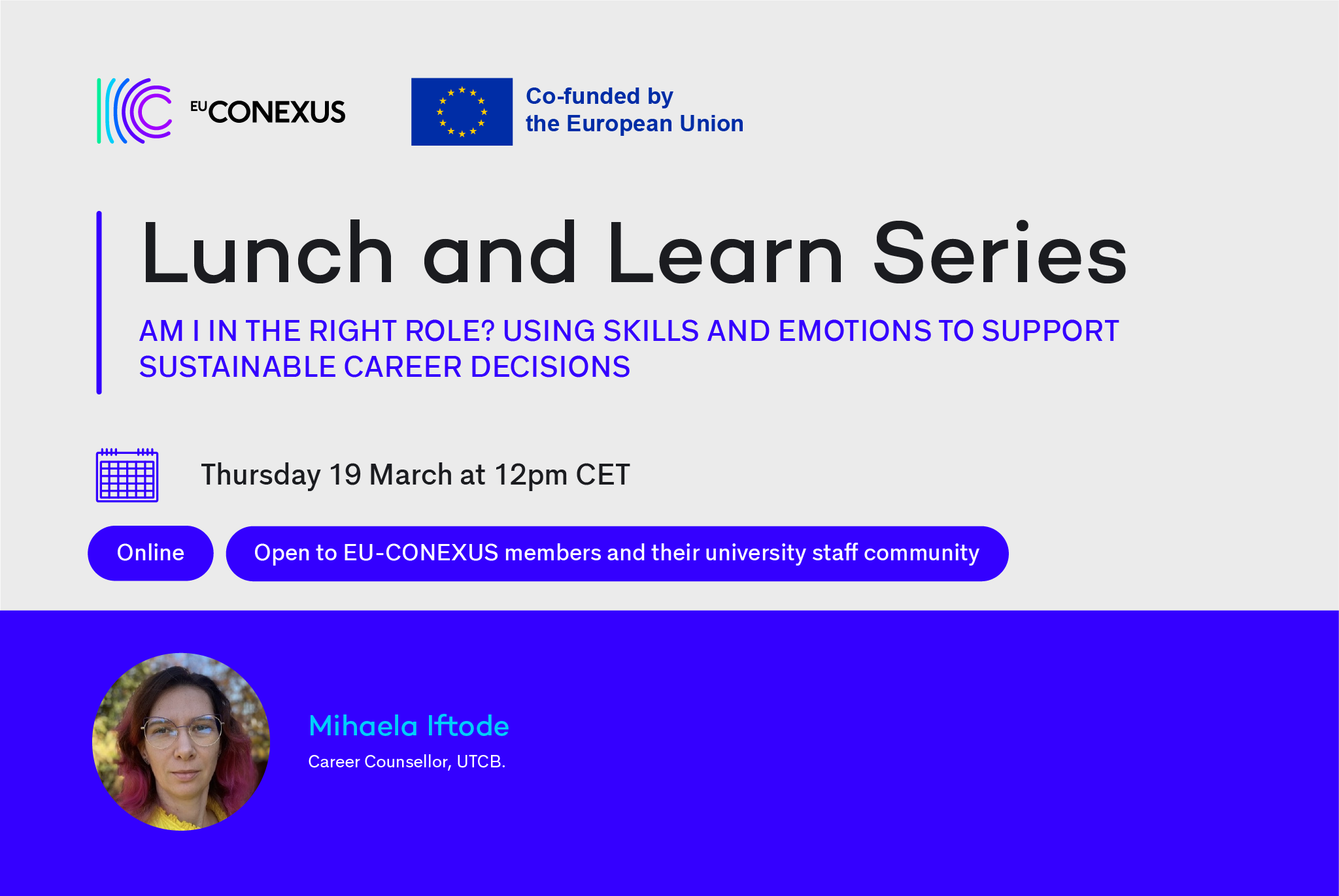EU-CONEXUS Karjeros tinklas maloniai kviečia jus dalyvauti artėjančioje nuotolinėje darbuotojų profesinio tobulėjimo sesijoje, kuri vyks ketvirtadienį, kovo 19 d., 13.00 val (Lietuvos laiku).