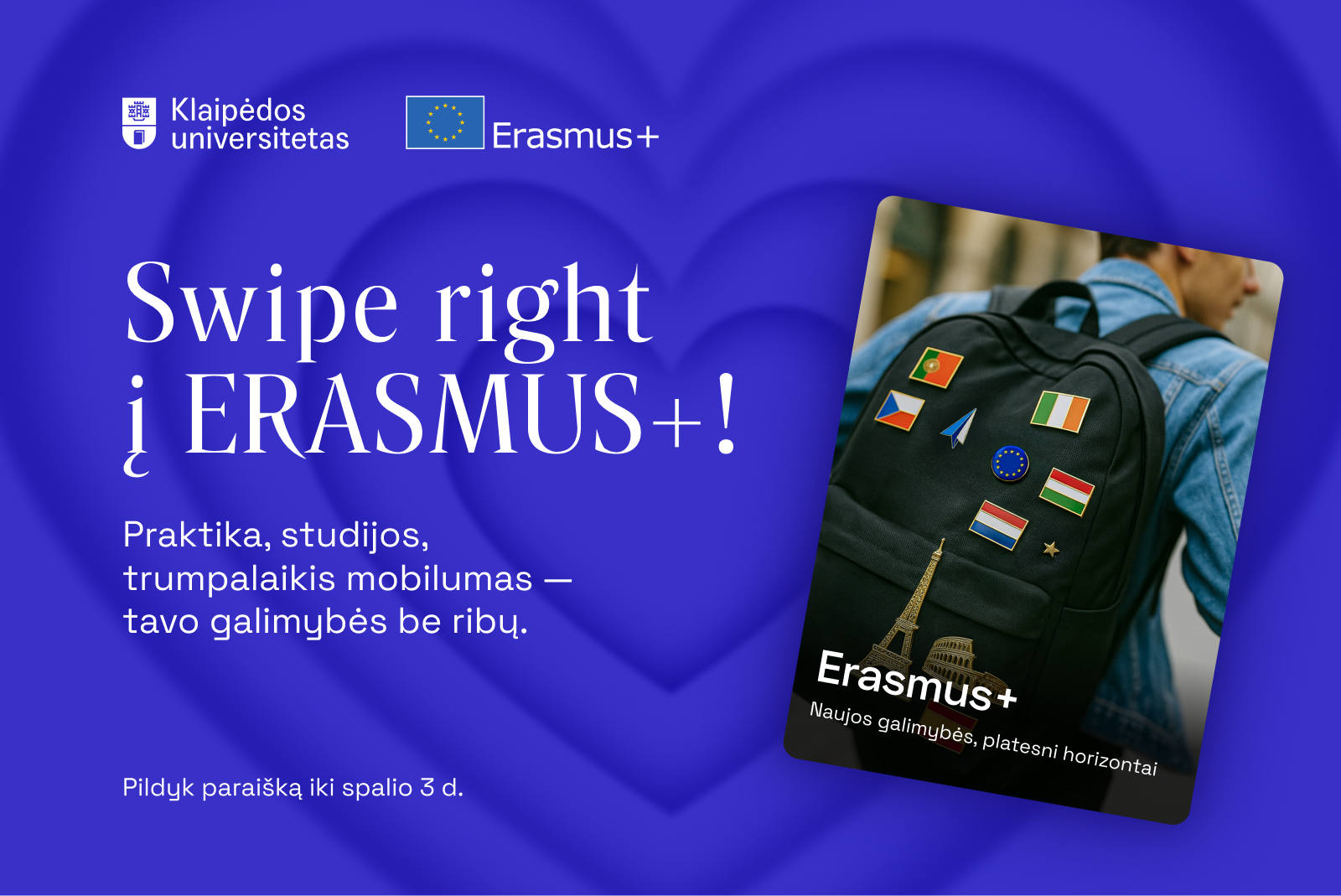 Kviečiame visus Klaipėdos universiteto studentus teikti paraiškas dalyvauti Erasmus+ programoje!